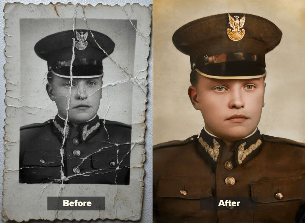 You receive every photo in 2 distinct versions: 1. Black & White – fully restored and cleaned. 2. Full Color – restored and professionally colorized.